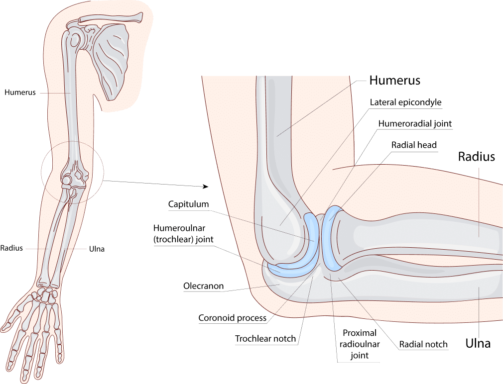 Because of its frequent use and range of motion, the elbow is prone to injuries like tendonitis, fractures, dislocations, and nerve compression.