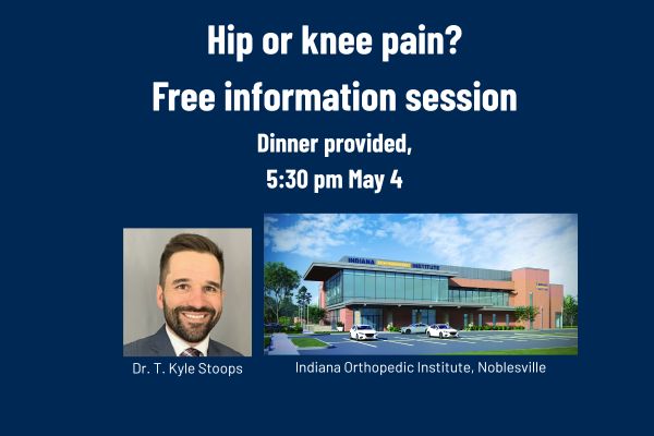 There is help! Dr. T. Kyle Stoops, a joint replacement surgeon with Indiana Orthopedic Institute, will present an in-person seminar on hip and knee pain and arthritis, providing an overview of common conditions, nonsurgical and surgical treatments, and a question-and-answer session.